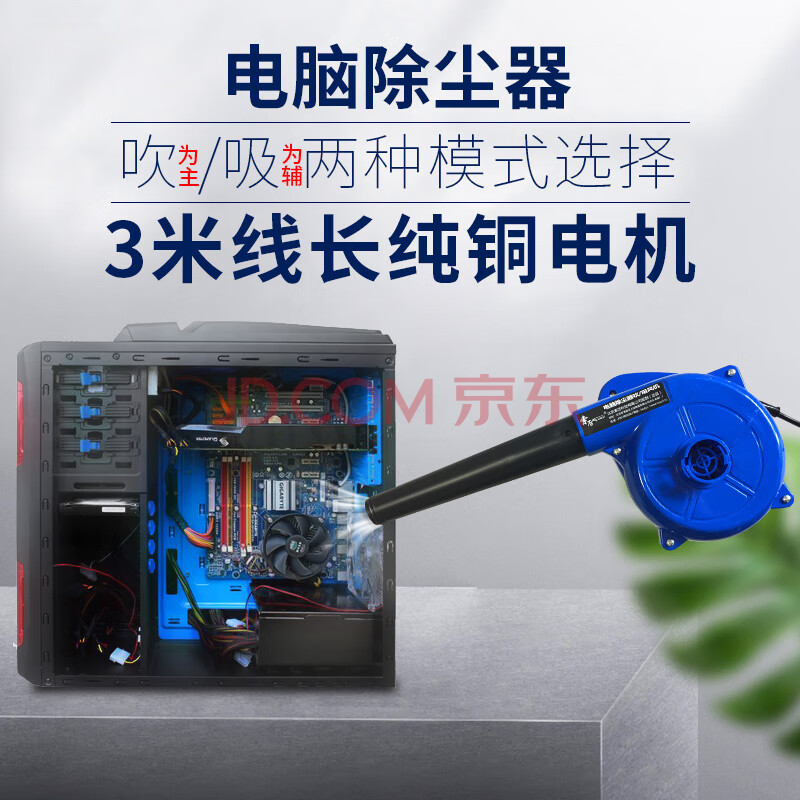 商品相册:索厉 电脑除尘/线长3米/定速设计/吹吸风机/400W-600W吹吸风机/工业施工吹尘手持鼓风机/SL-DC01(蓝色)第