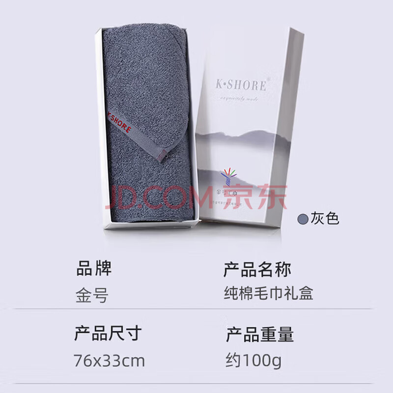 商品相册:金号毛巾礼盒 A类纯棉加厚吸水毛巾 礼盒单条装灰色76*33cm100g第