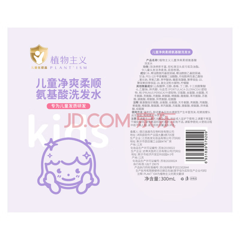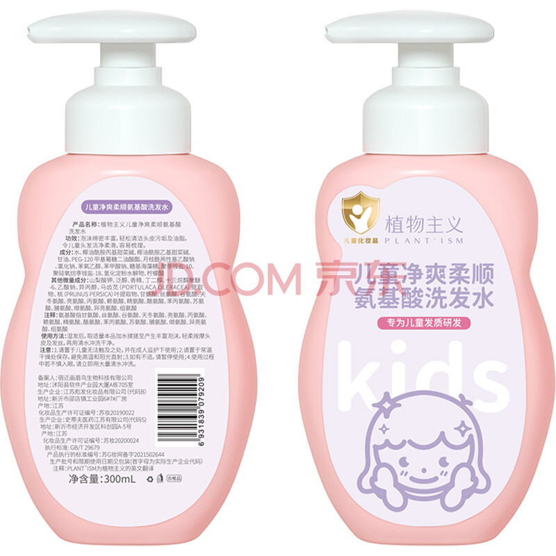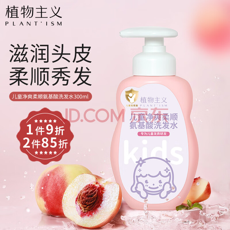 商品相册:植物主义儿童洗发水3-12岁柔顺丝滑洗头膏绵密泡沫蜜桃味专用女孩洗发水第