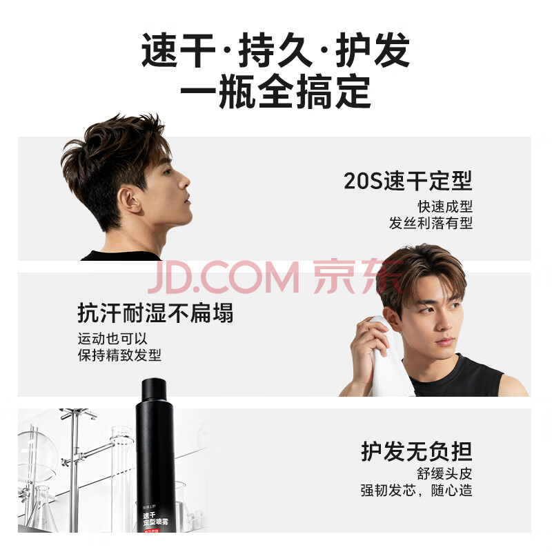 商品相册:京东京造男士速干定型喷雾300ml 发胶头发蓬松喷雾干胶喷雾自然持久第