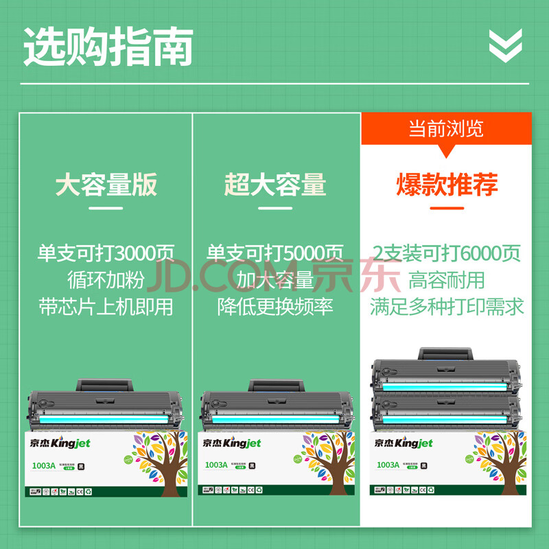 商品相册:京杰W1003AC硒鼓带芯片 适用惠普103a硒鼓 HP Laser 131a MFP 133pn 103A打印机粉盒墨盒易加粉 大容量双支装第