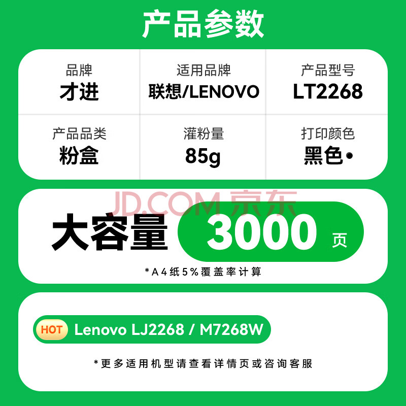 商品相册:才进适用联想LT2268黑色粉盒LD2268硒鼓M7208W Pro/LJ2268/LJ2268W/M7268/M7268W打印机墨盒复印一体机墨粉盒第