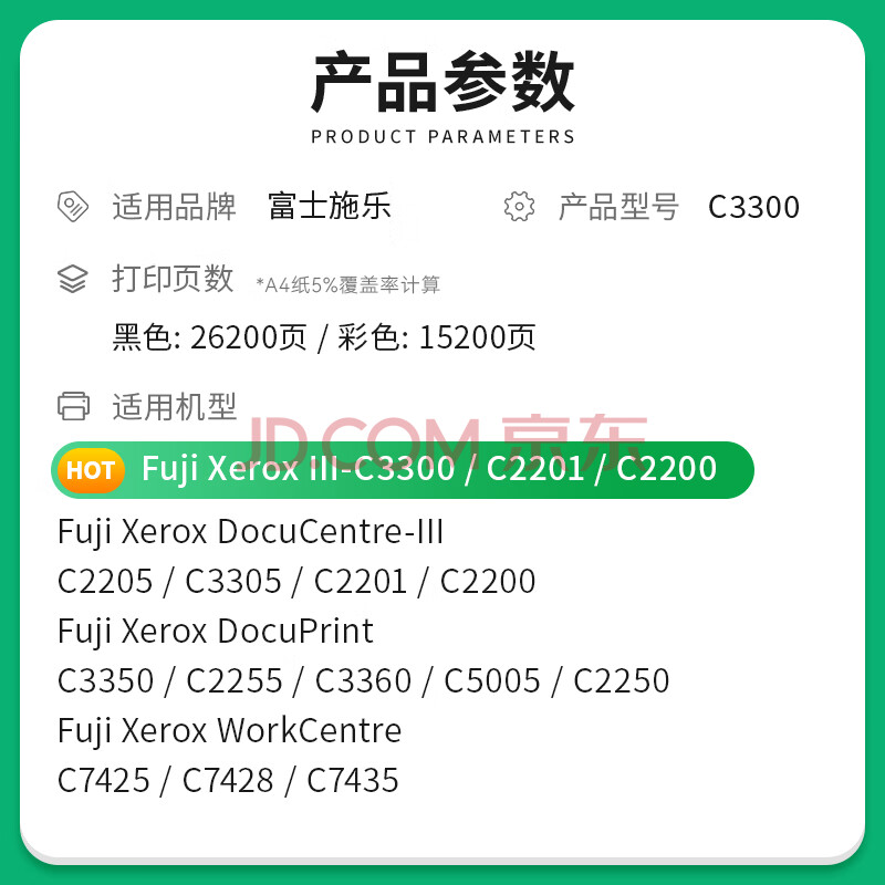 商品相册:才进适用富士施乐C3300粉盒彩色7425 7435三代DocuCentre-III C2200墨粉C2205墨盒C3305 7428复印机碳粉C2201第