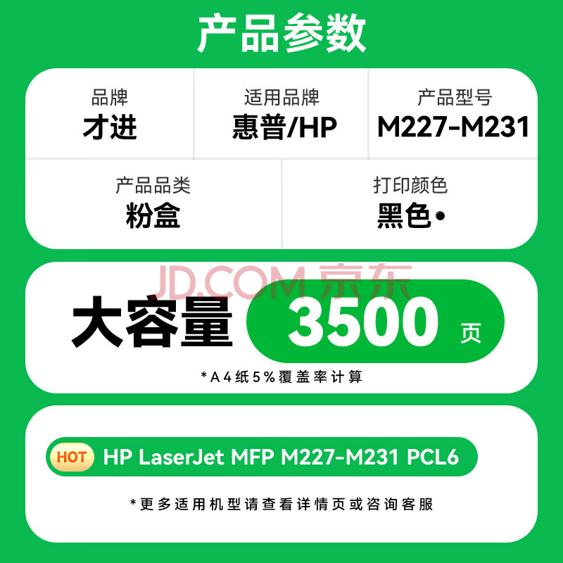 商品相册:才进适用惠普M227 M231专用硒鼓HP LaserJet MFP M227-M231打印机粉盒PCL6激光复印一体机墨粉盒易加粉碳粉盒鼓架第