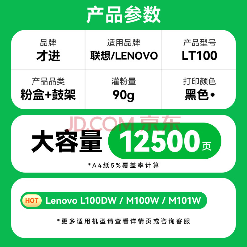 商品相册:才进适用联想领像m101dw粉盒m100w m100 m102w硒鼓LT100打印机碳粉L100w m100D墨盒L100d L100dw m101d/w墨粉第