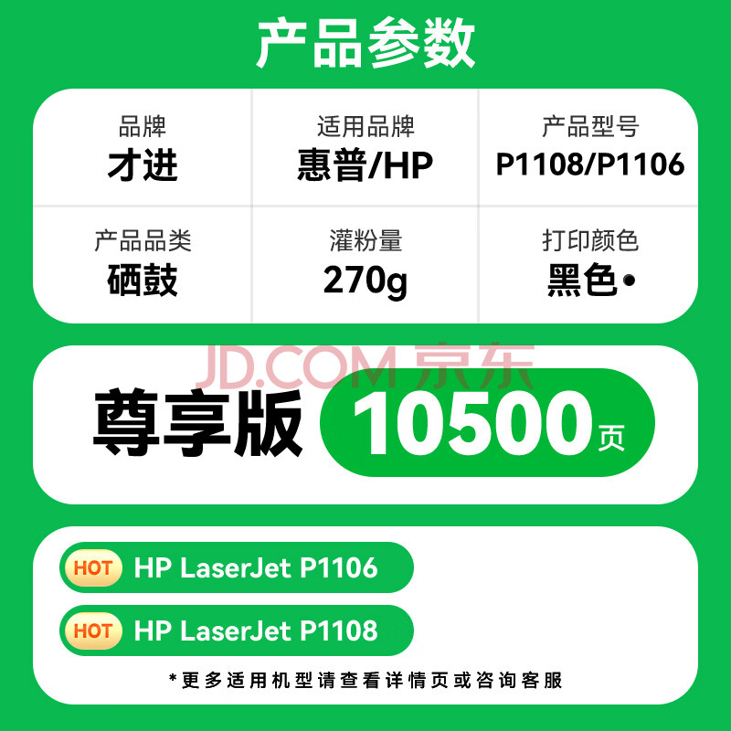 商品相册:才进适用hp/惠普p1108硒鼓Laserjet Pro MFP p1108激光打印机墨盒hp1108原装复印一体机墨粉盒1108专用碳粉盒第