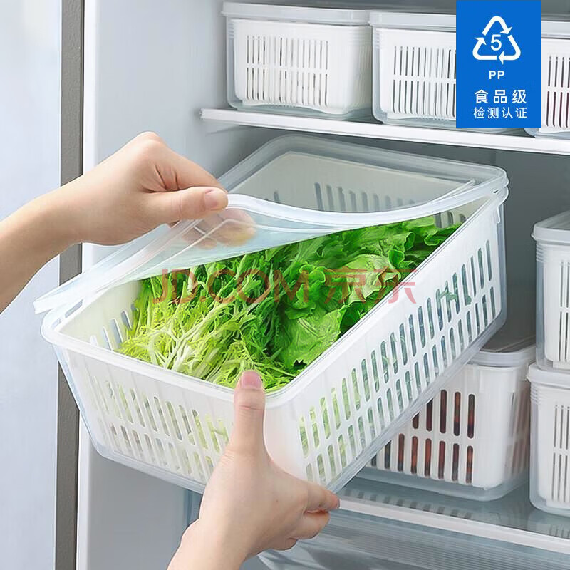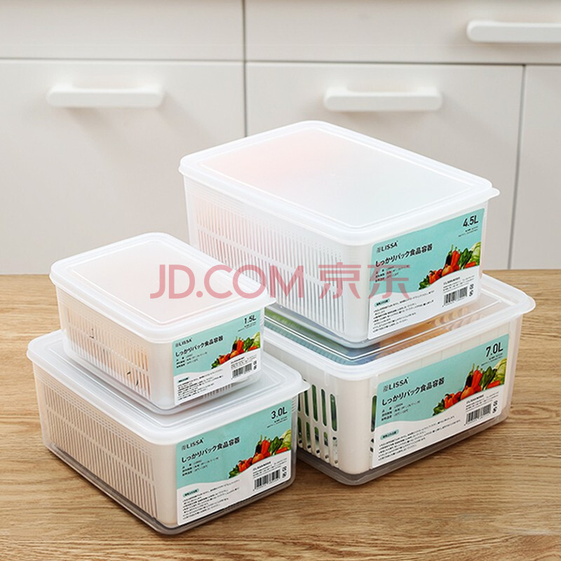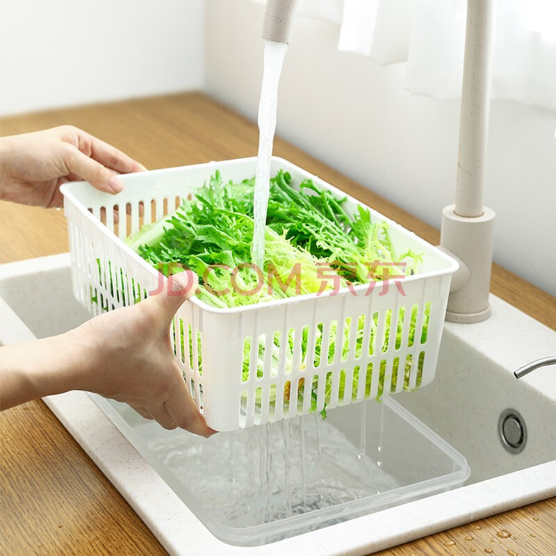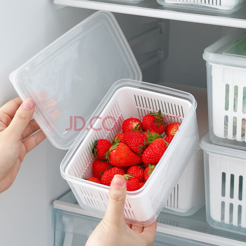 商品相册:家の物语(KATEI STORY)日本沥水保鲜盒双层冰箱水果盒食品级洗菜篮带盖篮果蔬收纳盒3L第