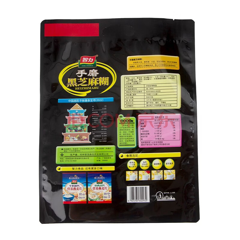 商品相册:智力手磨黑芝麻糊700g无添加白砂糖独立包装五谷代餐冲泡冲饮营养早餐第