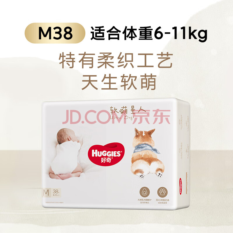 商品相册:好奇(Huggies)软萌星人柯基裤纸尿裤M38片(6-11kg)尿不湿【软糯贴贴】第