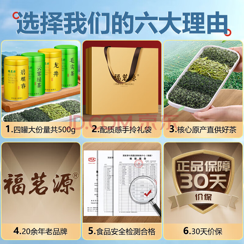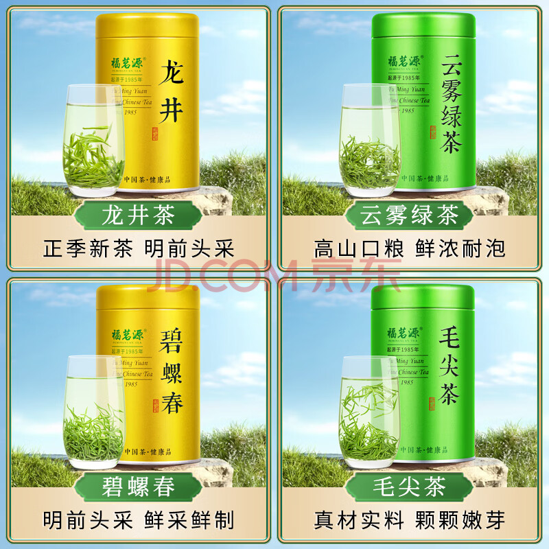 商品相册:福茗源四大绿茶500g 明前2026新茶碧螺春龙井茶毛尖云雾茶叶礼盒口粮茶第