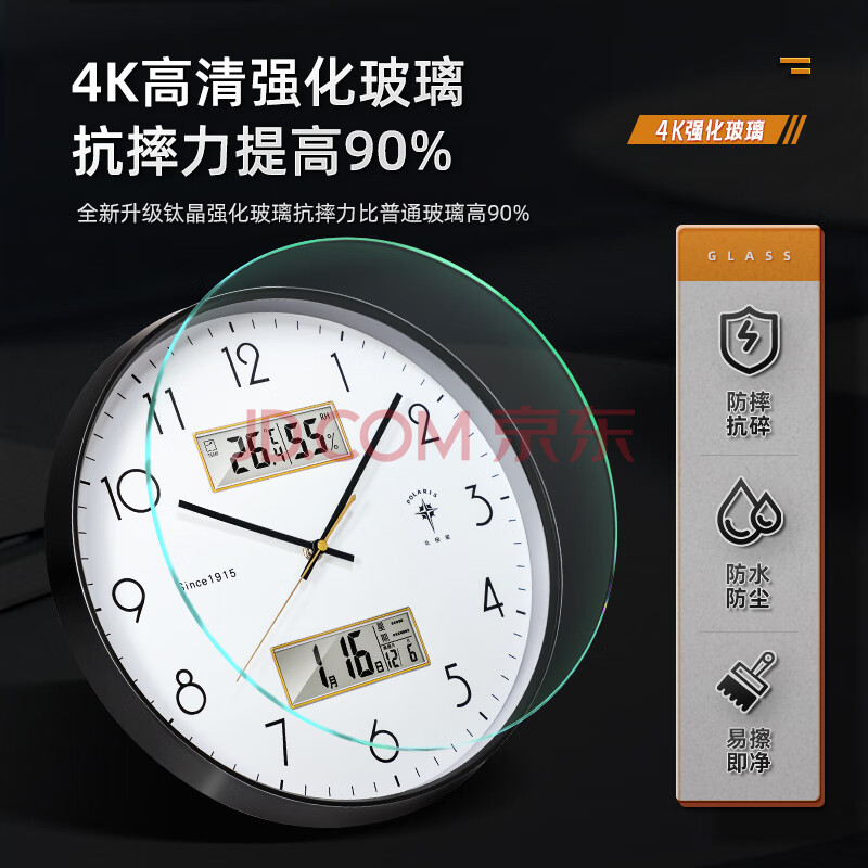 商品相册:北极星(POLARIS)挂钟客厅钟表家用时尚简约时钟万年历现代石英钟挂表 30cm金色第