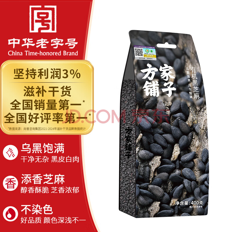 商品相册:方家铺子中华老字号 有机黑芝麻400g 生黑芝麻杂粮 烘培辅料 粗粮第