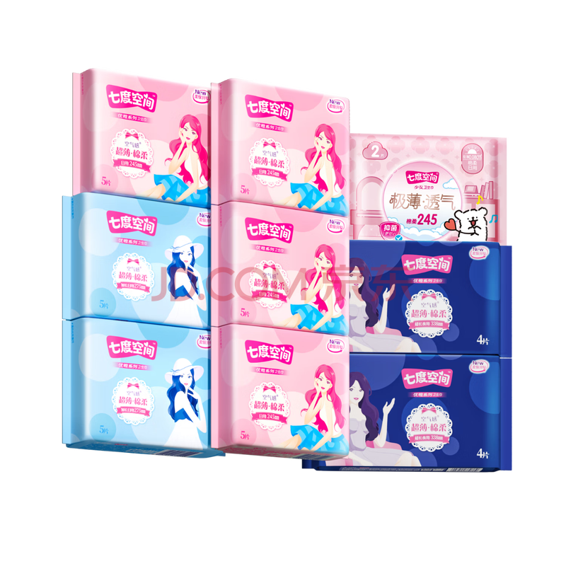 商品相册:七度空间优雅卫生巾超薄透气棉柔空气感日夜组合姨妈巾40片【新国标认证】第