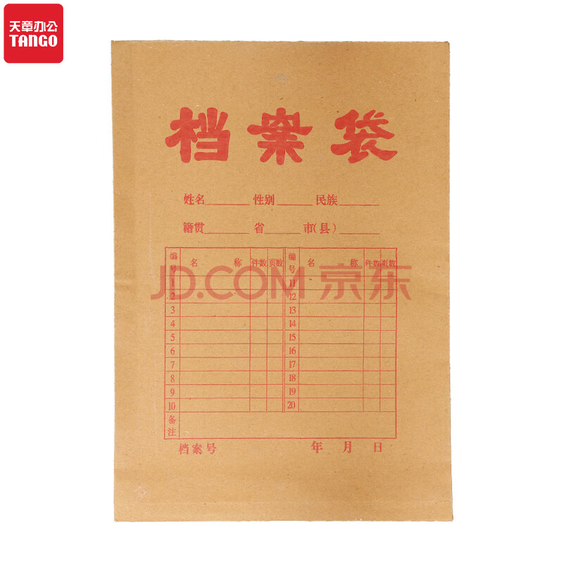 商品相册:天章(TANGO)a4牛皮纸档案袋250g侧宽6cm*20只装文件袋资料袋人事合同标书收纳袋办公室可定制 T19612第