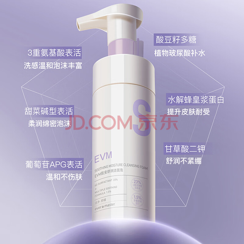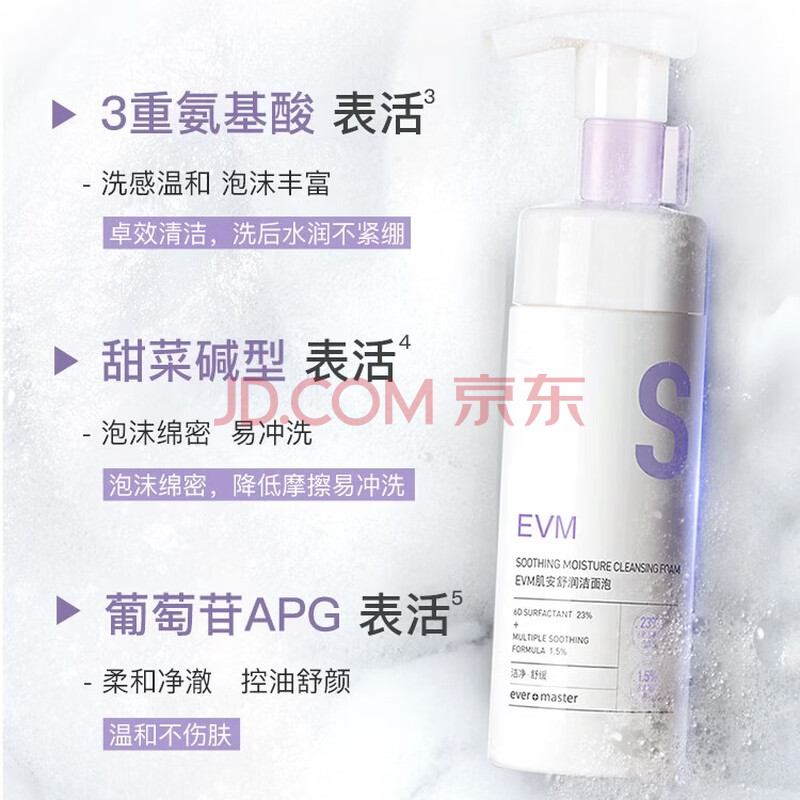 商品相册:EVM肌安洁面氨基酸清洁面部水润不紧绷脸部泡沫洗面奶120ml第