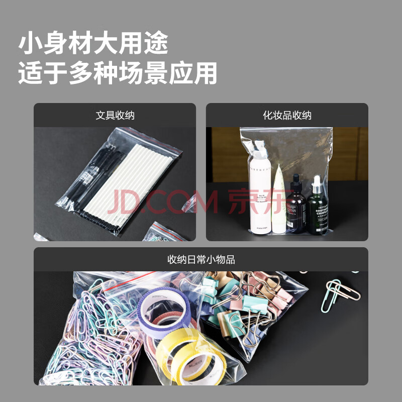 商品相册:得力(deli)食品密封袋10号33*24cm 防水防尘保鲜收纳PE透明 100只 3029第