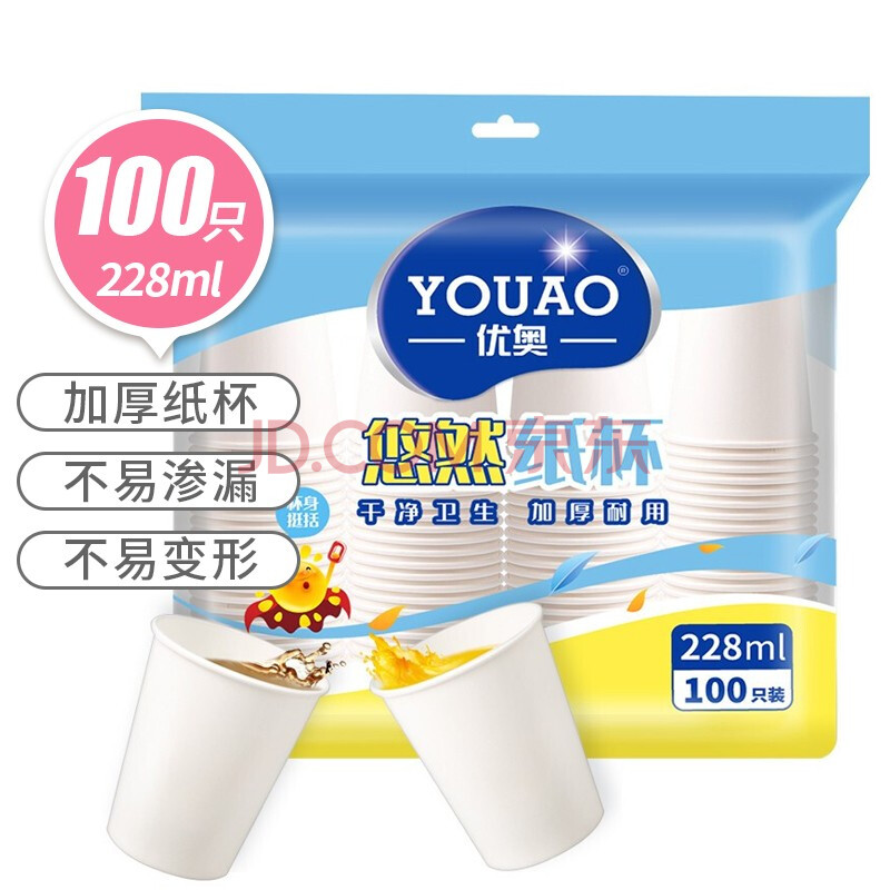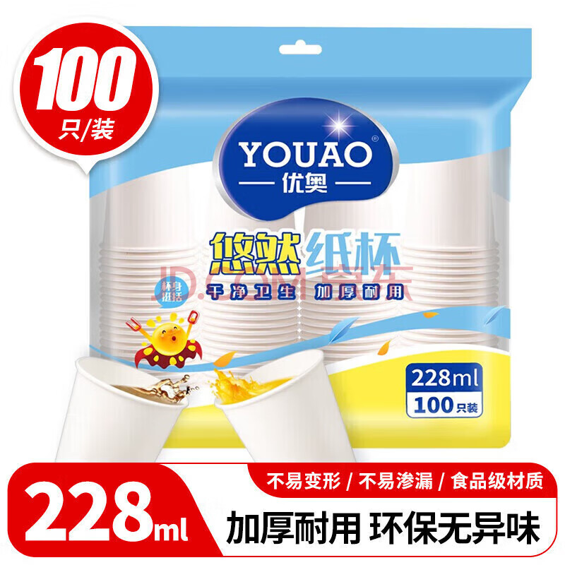 商品相册:优奥 纸杯一次性杯子228ml*100只加厚款水杯办公商务家用批发食品级第