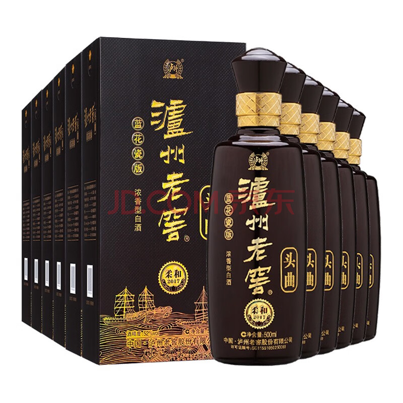 商品相册:泸州老窖蓝花瓷头曲 柔和 浓香型白酒 52度 500ml 6瓶 整箱(送礼袋)第