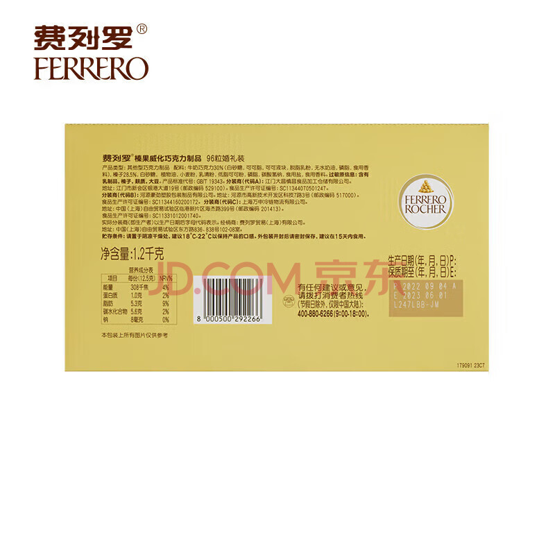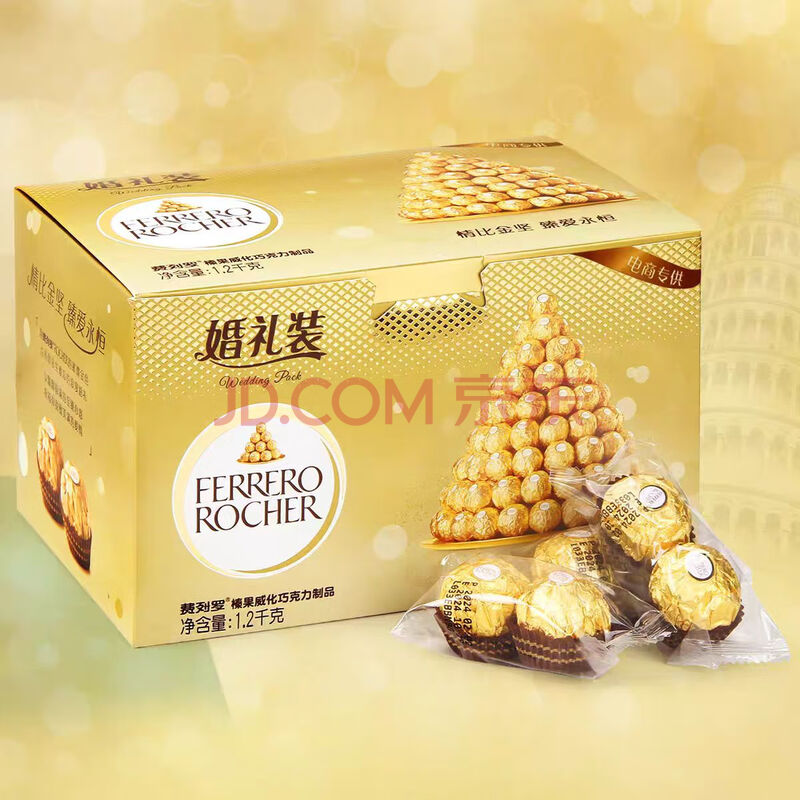 商品相册:费列罗 巧克力 2粒*48条 96粒1200g 婚礼装 零食糖果 喜糖 生日礼物第