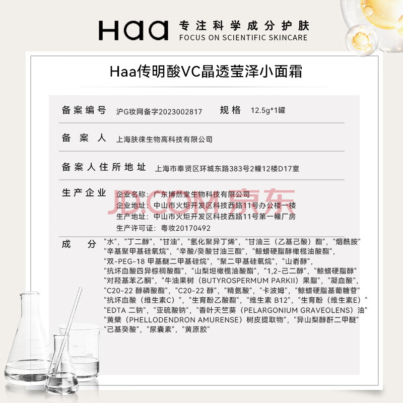 商品相册:Haa面霜 传明酸VC晶透莹泽小面霜 改善暗沉焕亮肌肤护肤品12.5g第
