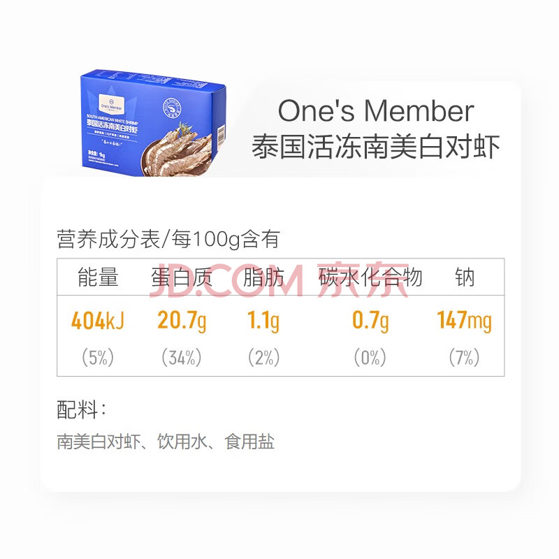 商品相册:1号会员店(One's Member) 泰国活冻白对虾 海鲜水产 净重2斤 盒装 31-40只第