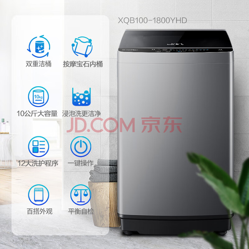 商品相册:新飞(Frestec)10公斤波轮全自动洗衣机 水电双宽 家用大容量 预约洗涤 双重洁桶XQB100-1800YHD第