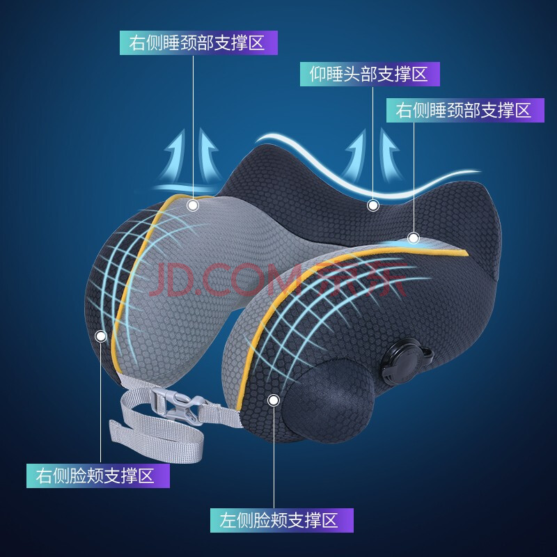 商品相册:易旅充气U型枕 按压式充气 旅行出差午睡枕头 深邃蓝套装第