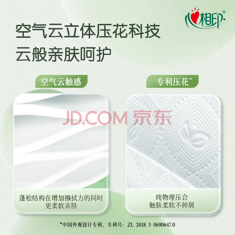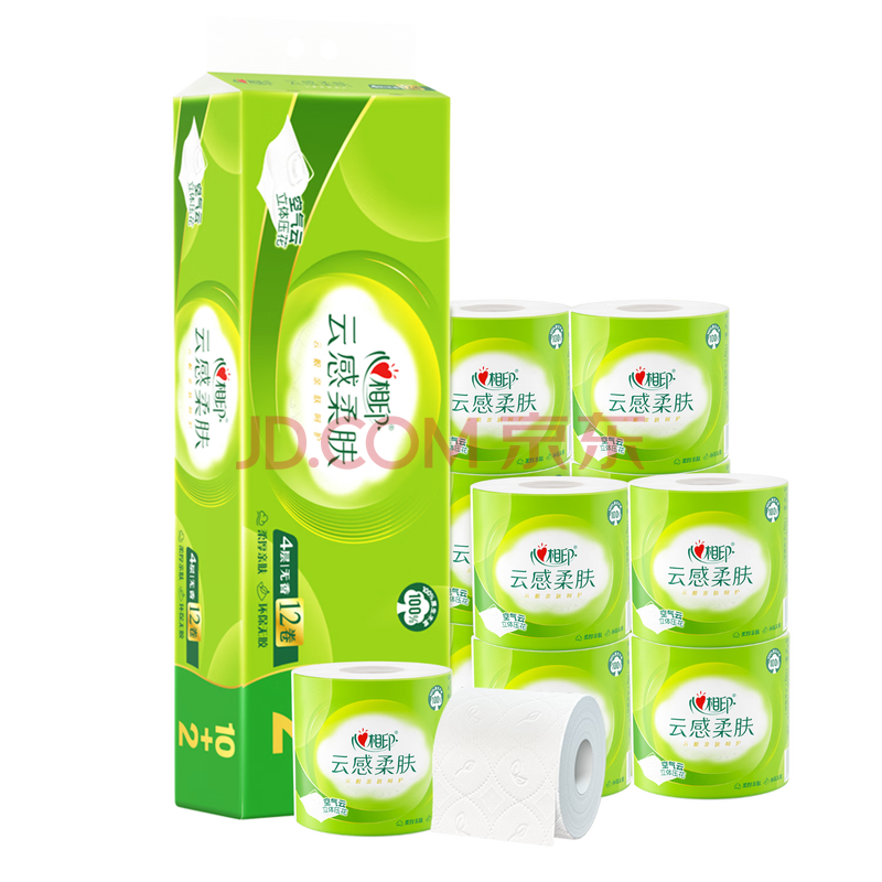 商品相册:心相印有芯卷纸 云感柔肤 4层110g*12卷卫生纸巾 柔韧亲肤卷筒纸 单提装第
