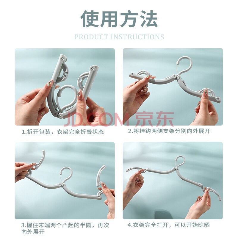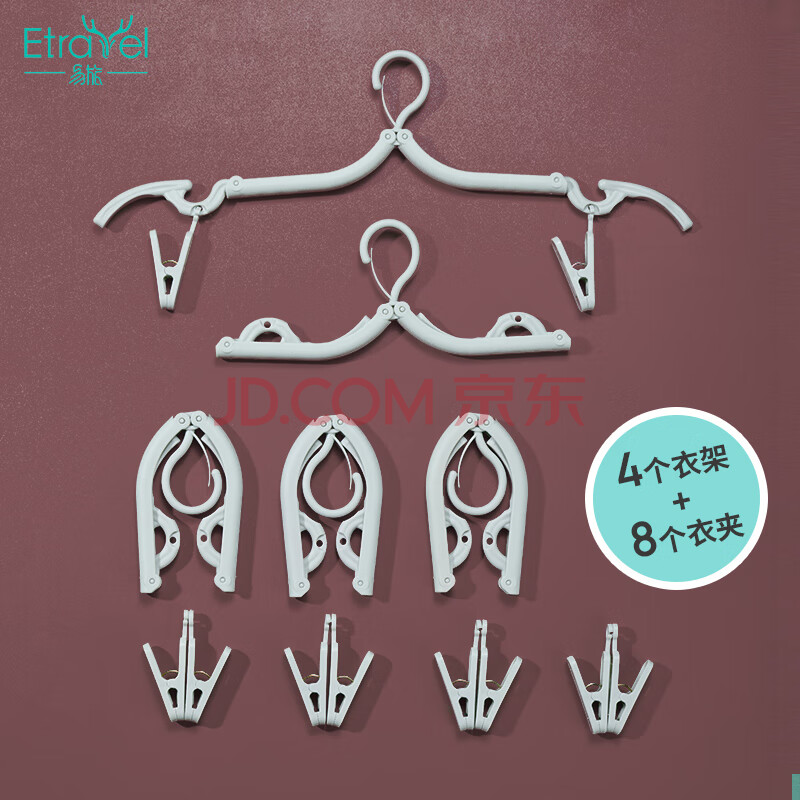 商品相册:易旅(Etravel)折叠衣架 旅行晾衣架带夹多功能折叠便携式小衣夹 蓝色4个装第