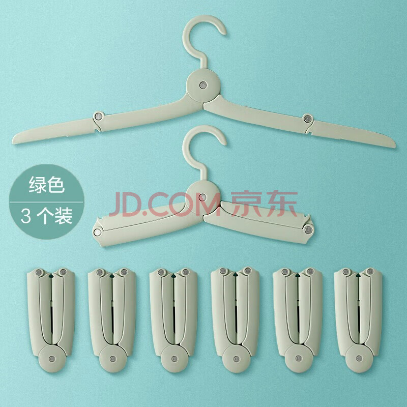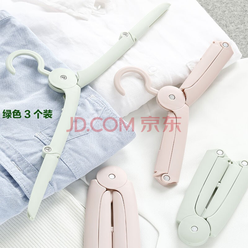 商品相册:易旅 旅行折叠衣架 便携家用挂衣架出差可折叠晾衣架防滑 绿色3个装 第