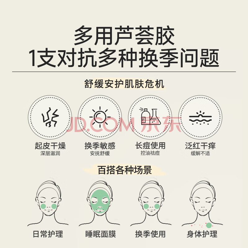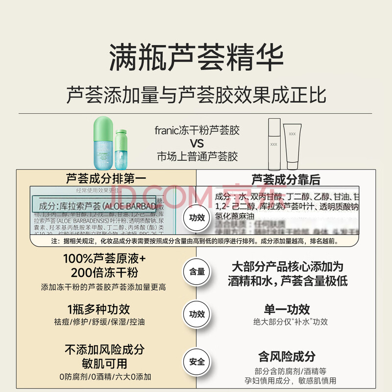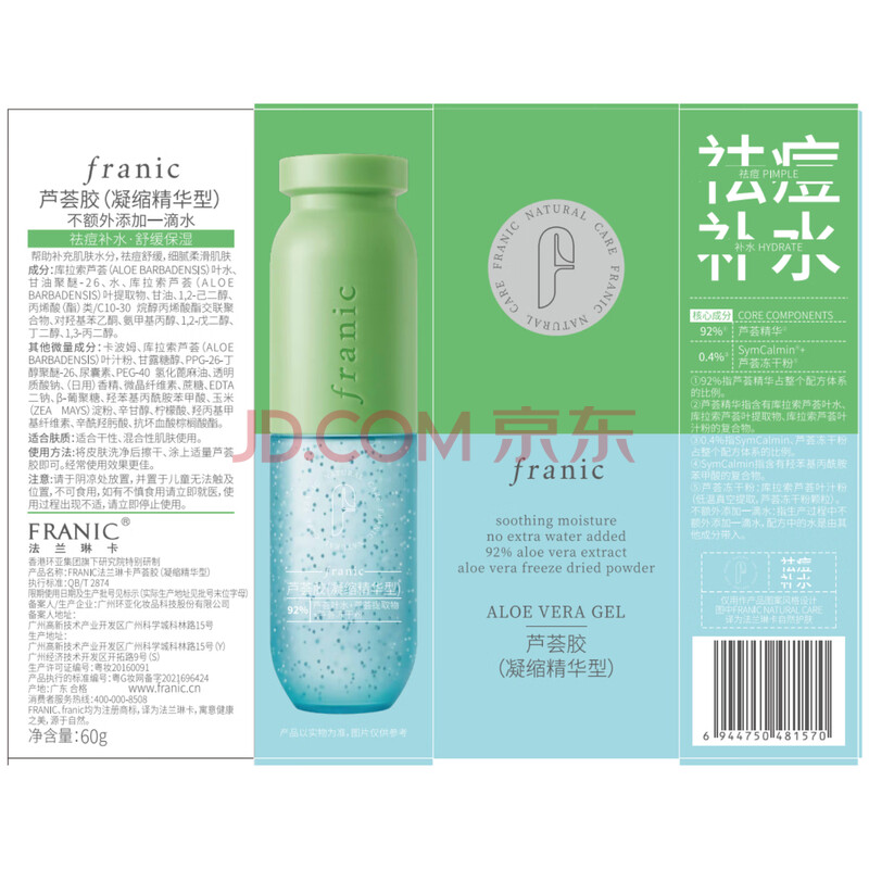 商品相册:法兰琳卡芦荟胶修护皮肤晒后祛痘收缩毛孔男女士专用60g第