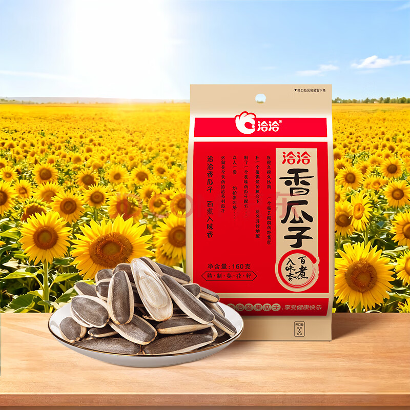 商品相册:洽洽香瓜子160g经典红袋包装五香味葵花籽坚果炒货周末休闲零食小吃第1张/共5
