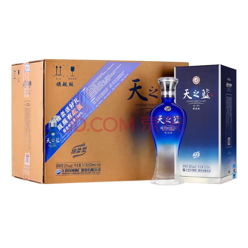 商品相册:洋河 蓝色经典 天之蓝52度520ml*6瓶 整箱装 绵柔浓香型白酒第