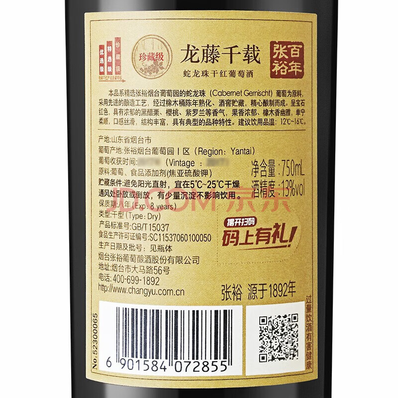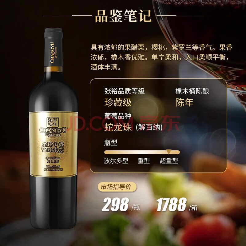 商品相册:张裕旗下龙藤名珠 珍藏级蛇龙珠干红葡萄酒750ml 自营红酒宴席送礼第