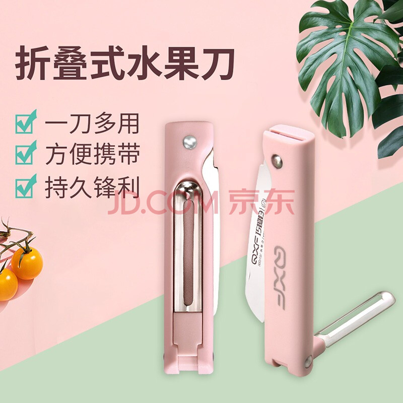 商品相册:巧媳妇(SMARTWIFE)水果刀折叠 家用瓜果刀随身便携宿舍厨房迷你刀多功能削皮刀具 粉第
