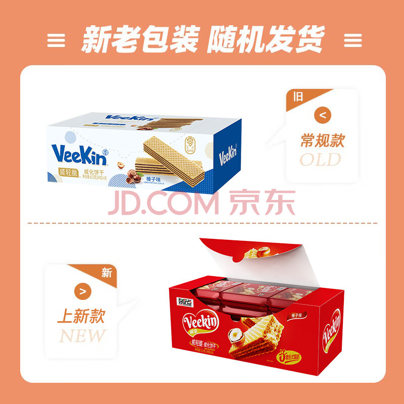 商品相册:好吃点 VeeKin榛子味威化饼干612g盒装 新老包装随机发货第