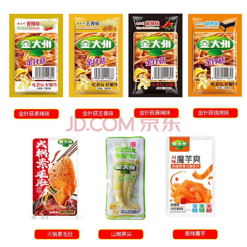 商品相册:金大州菌菇笋混合500g 金针菇泡椒竹笋尖麻辣魔芋毛肚休闲零食下饭菜第