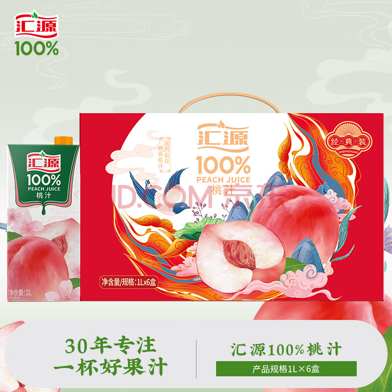 商品相册:汇源100%桃汁礼盒装纯果汁健康营养饮料 1L*6礼盒节日送礼宴请果蔬汁第