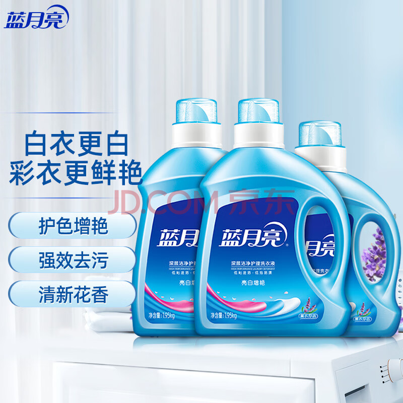 商品相册:蓝月亮 亮白增艳洗衣液 薰衣草香1.95kg*2瓶+1kg瓶 洁净去污 护衣护色第