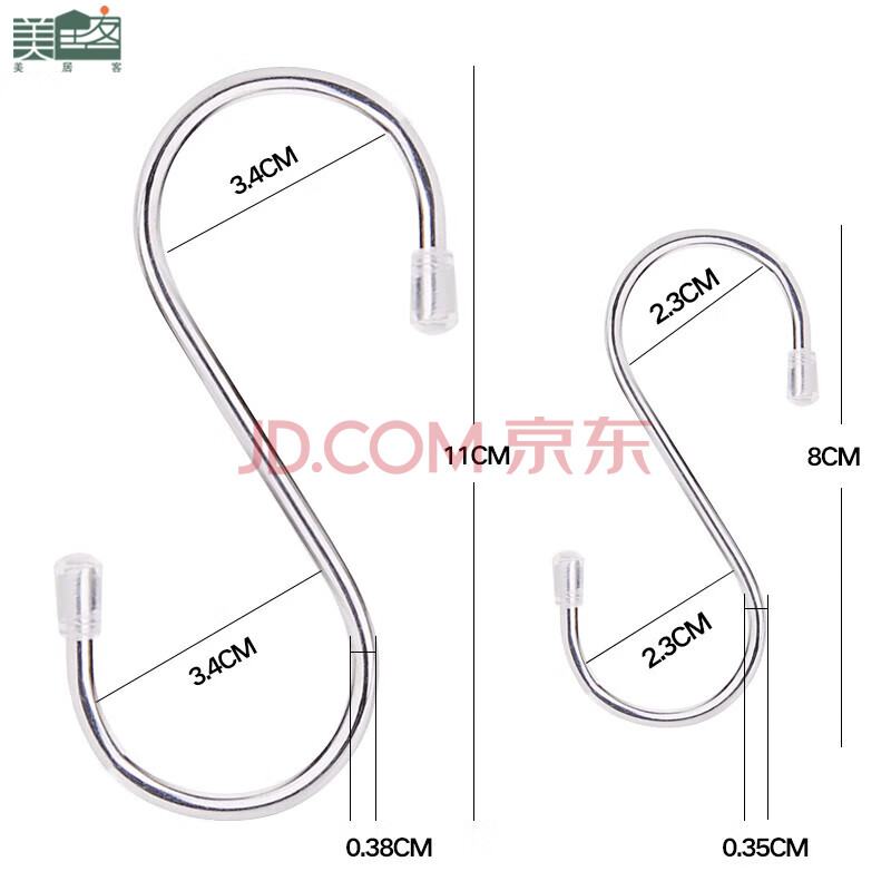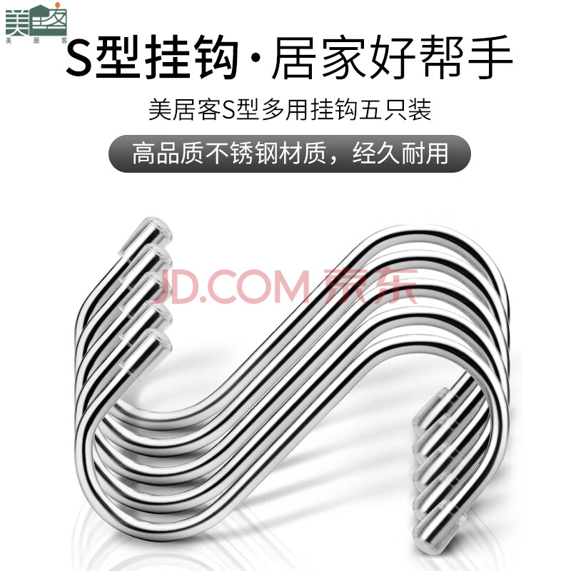 商品相册:美居客S型挂钩 实心加粗不锈钢挂钩 厨房挂钩 腊肉挂钩挂肉晒肉钩子 第