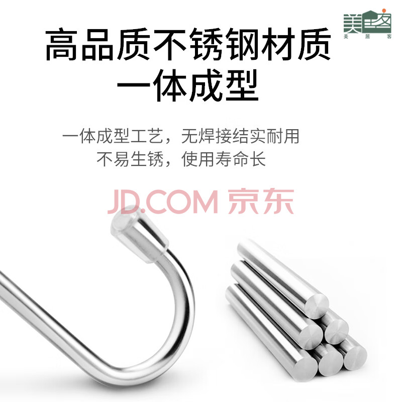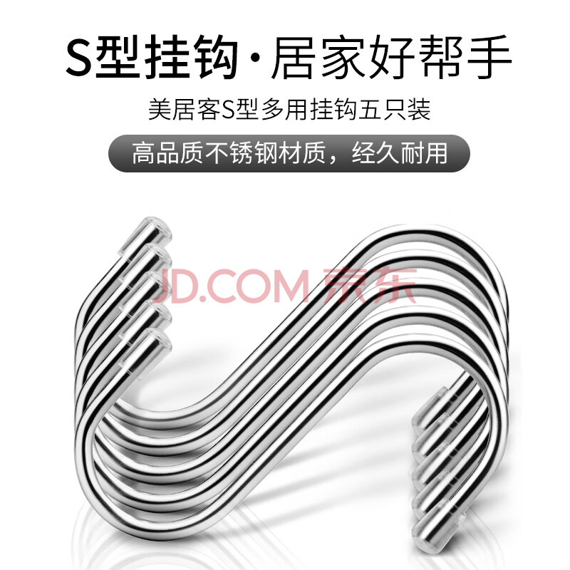 商品相册:美居客 S型挂钩 加厚不锈钢挂钩 厨房挂钩 免打孔毛巾挂钩8CM(五只装)第
