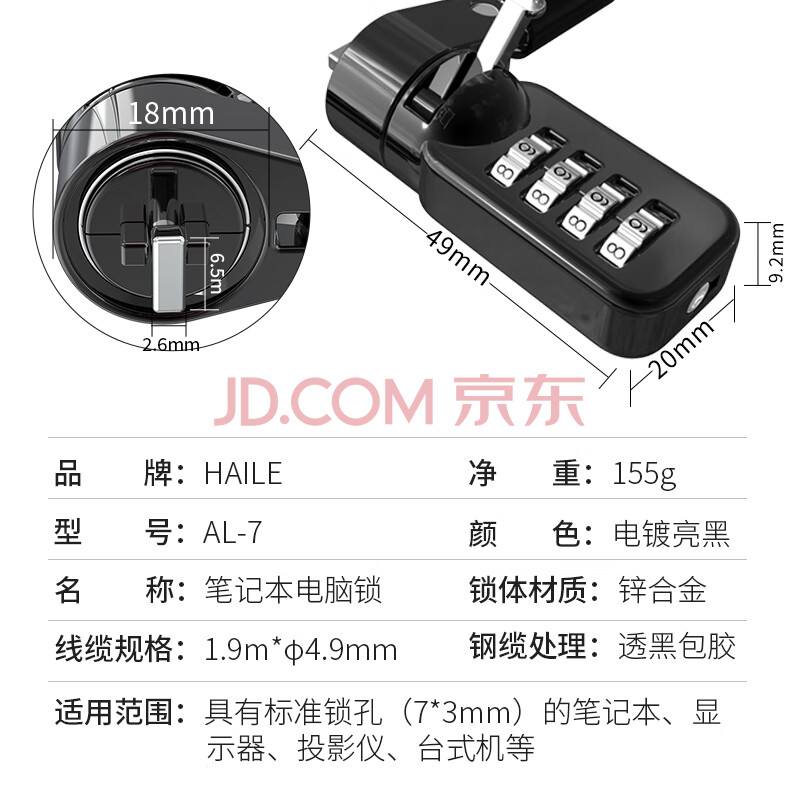 商品相册:HAILE海乐 笔记本防盗电脑锁孔机械革命玩家战神暗影骑士天选 7*3mm锁孔AL-7第
