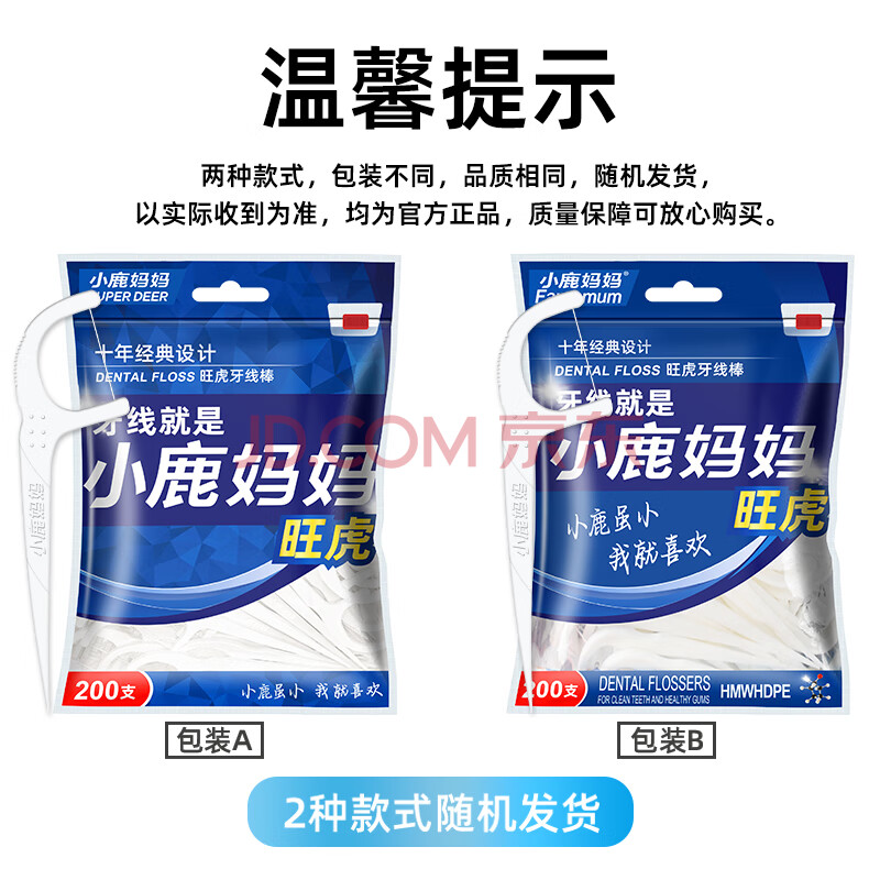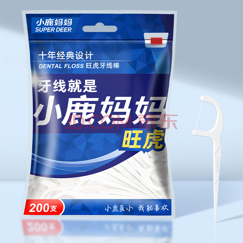 商品相册:小鹿妈妈洁齿旺虎牙线棒家庭装剔牙签200支/袋*3袋共600支随身盒方便携带第