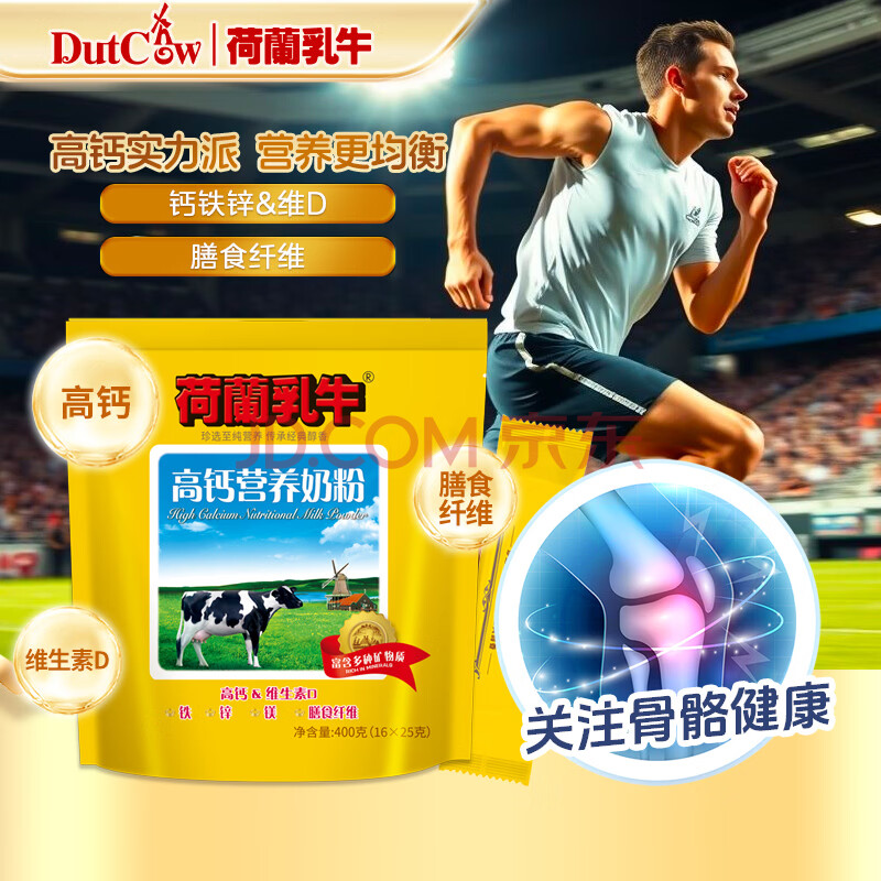 商品相册:荷兰乳牛高钙营养奶粉400g(25g*16)袋 成人小孩老人奶粉 钙铁锌&维D 第