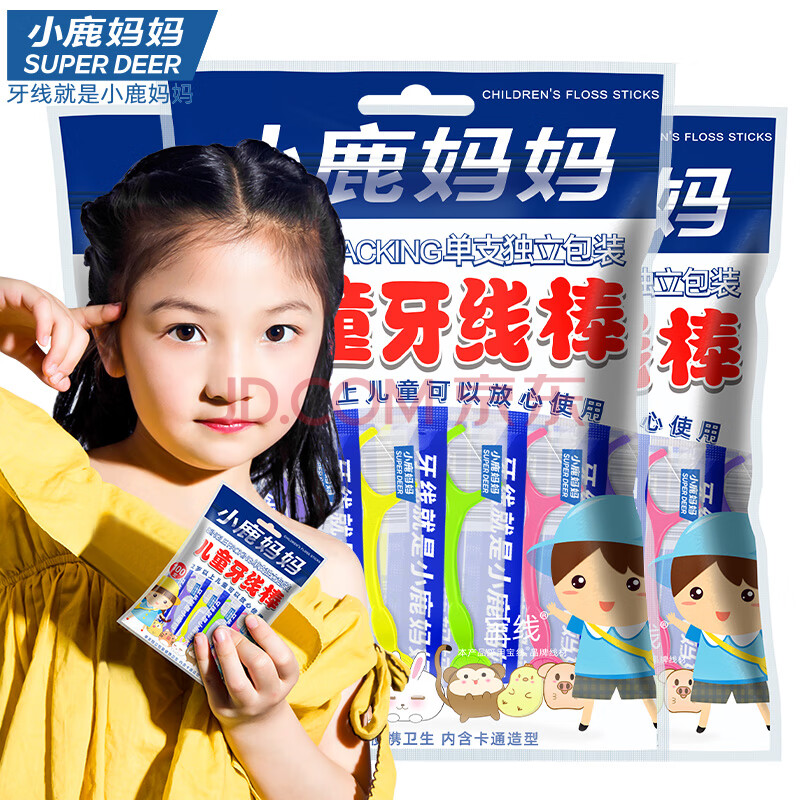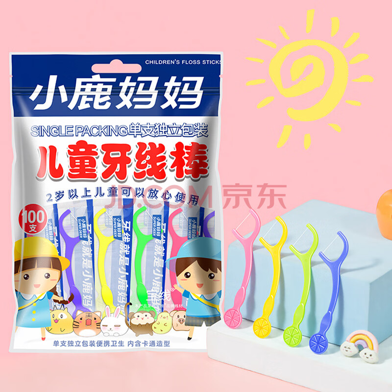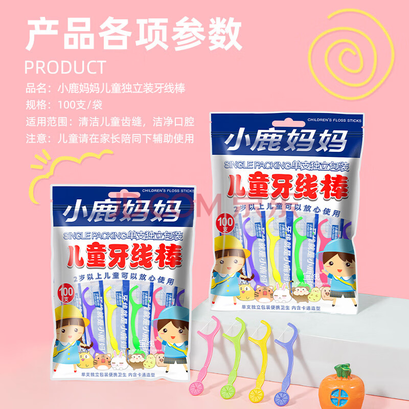 商品相册:小鹿妈妈单支独立儿童牙线超细牙签清洁家庭宝宝牙线棒100支/袋+随身盒第