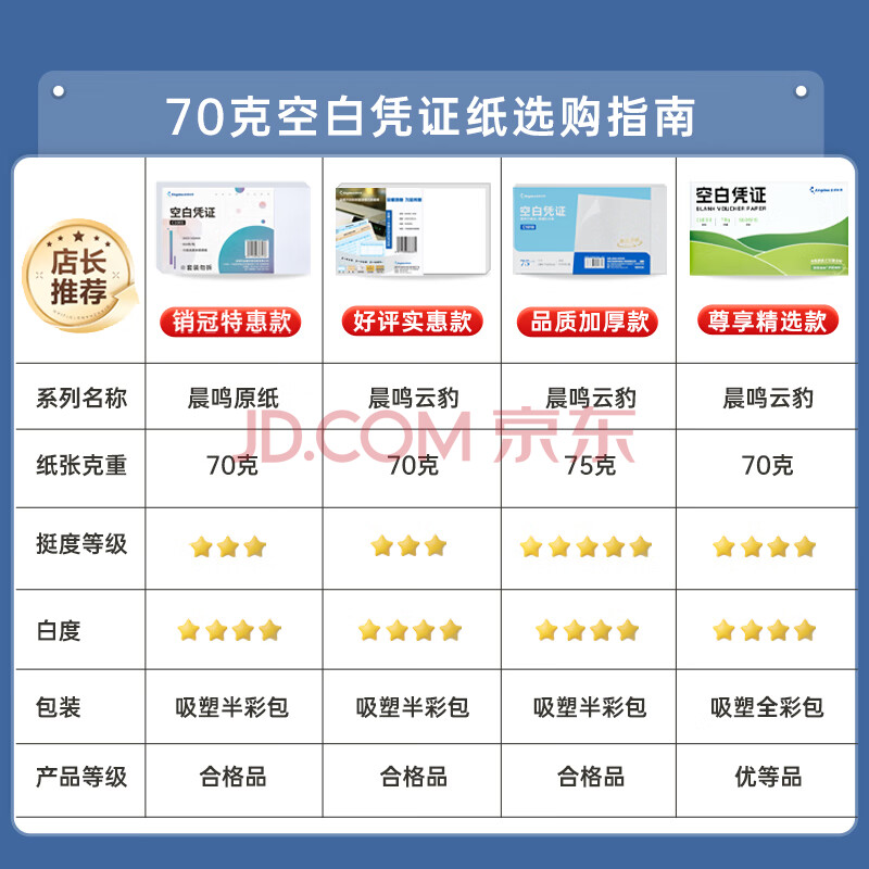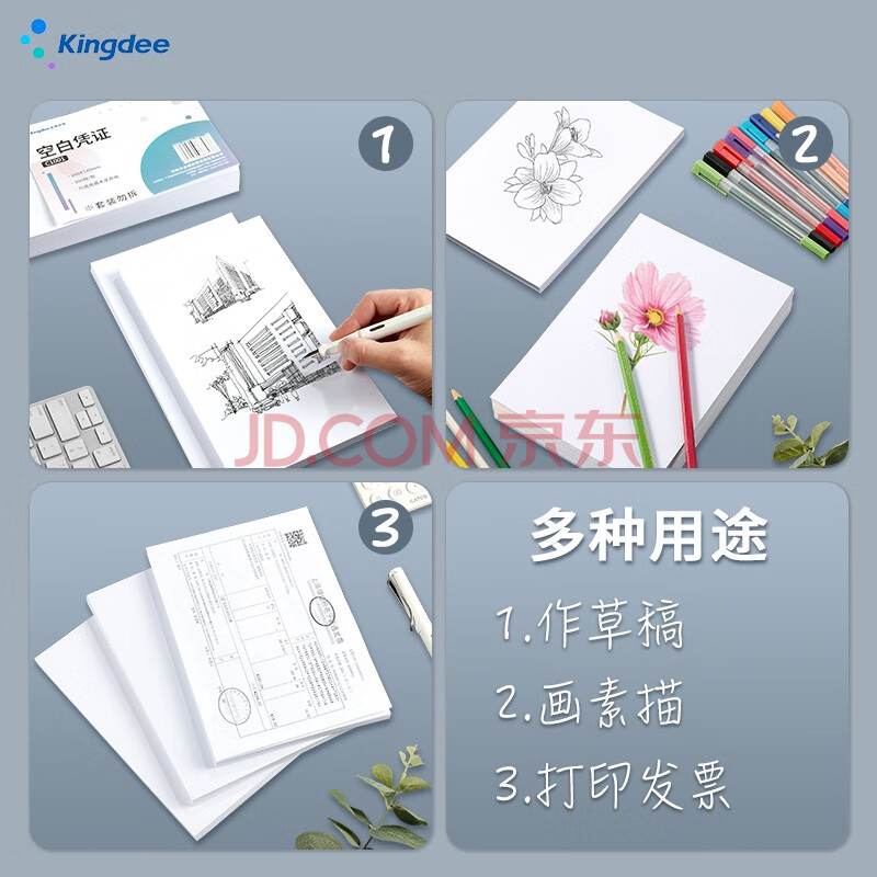 商品相册:金蝶(kingdee)空白凭证纸发票版240*140mm 适用于金蝶用友财务软件记账凭证打印纸 空白单据 500张/包第