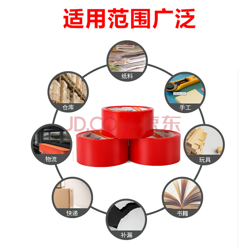 商品相册:斯图彩色胶带 标识分类胶带封箱胶带打包胶带快递胶带 48mm*50m 红色 3卷装第