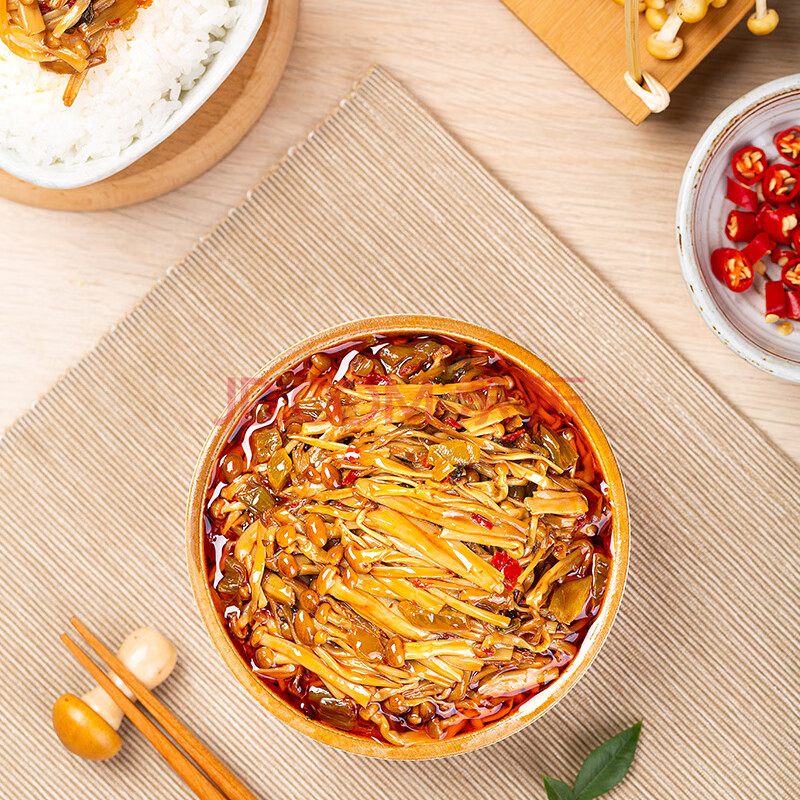 商品相册:饭扫光榨菜 爆炒金针菇280g 下饭菜香辣咸菜泡菜 拌饭拌面调味料第