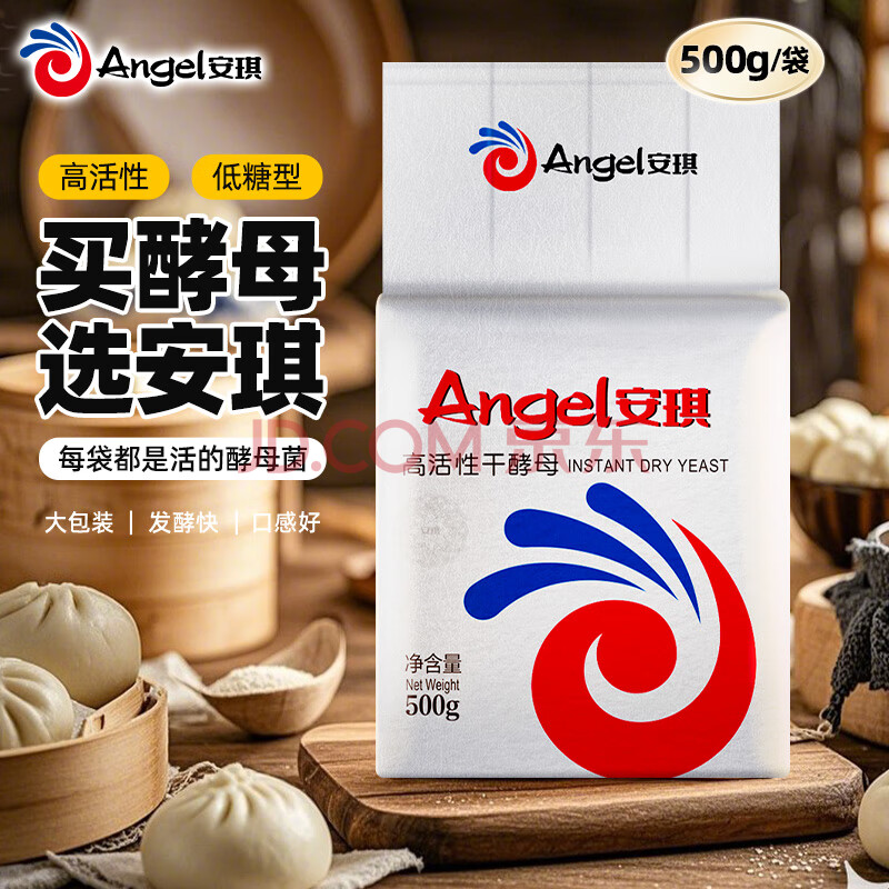 商品相册:安琪高活性干酵母粉500g低糖型家用发面蒸馒头包子花卷发酵粉烘焙原料第