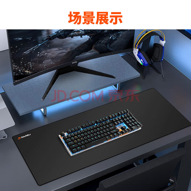 商品相册:达尔优游戏电竞鼠标垫 fps顺滑加厚精密锁边 电脑键盘办公超大号桌垫 纯黑800*300*3mm第